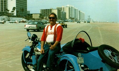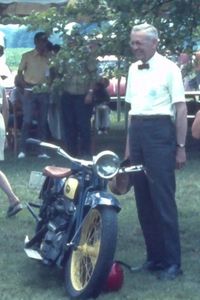 LEC started as a result of Jack Tolson and the writer going to a car meet in Wicliffe, Ohio east of Cleveland on a beautiful Sunday afternoon in June 1975. At the meet we met and talked with a real character in the best sence or the word. This guy, who turned out to later become our first President was Paul Geltch. Paul, already in his sixties, was astride a blue 42 HD with a sidecar decorated as only Paul could decorate. You old guys know what I mean. Paul ran a body shop on Lake Shore Blvd. and E. 140th St in Cleveland, Sprayed paintwithout a mask, cleared his throat between coats at Al's next door, and shut down to go to thistledown or Randall whenever the spirit moved him. Paul also had a basement full of old motorcycles and a body shop full of 60's T-Birds and old motorcycles. In reality the body shop was a sideline and was kept going as it did not interfere with Pauls first loves.